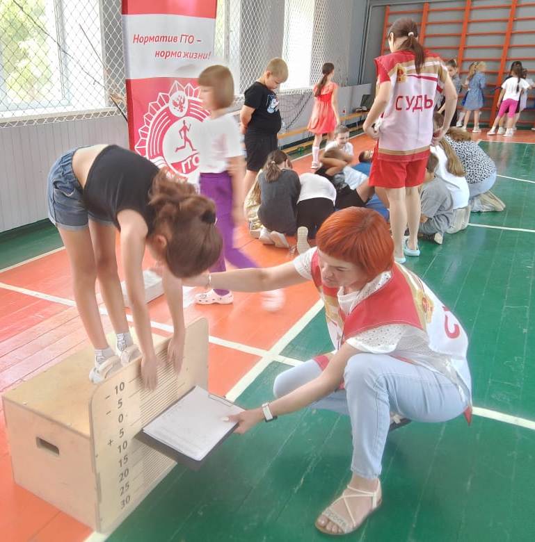 Ребята, отдыхающие в летнем оздоровительном лагере «Буратино», сдали нормы ВФСК ГТО (I и II ступени). С напутственным словом выступила инструктор-методист С.В. Шевченко. Центр тестирования п. Михайловский проводит такие состязания ежегодно, предоставляя детям возможность проверить свою физическую подготовку и укрепить здоровье. Воспитанники лагеря с большим усердием проходили тестирование, продемонстрировав силу, ловкость, гибкость, скорость и выносливость: прыжок в длину с места толчком двумя ногами, подтягивание на низкой перекладине, наклон вперёд (на гибкость), челночный бег и другие. Многие ребята успешно справились с нормативами. Судьи следили за правильностью выполнения испытаний, оценивали и фиксировали результаты. Помогали судьям В. Шевченко и Д. Фомичев. Отметим, Вероника и Данила имеют золотые знаки и неоднократно подтверждали свои результаты. Двое ребят оздоровительного лагеря: Чесноков П. и Маштакова А. получили заветный золотой знак ВФСК ГТО за 2024 год. Поздравляем их с достижениями и желаем дальнейших успехов и спортивного настроения!