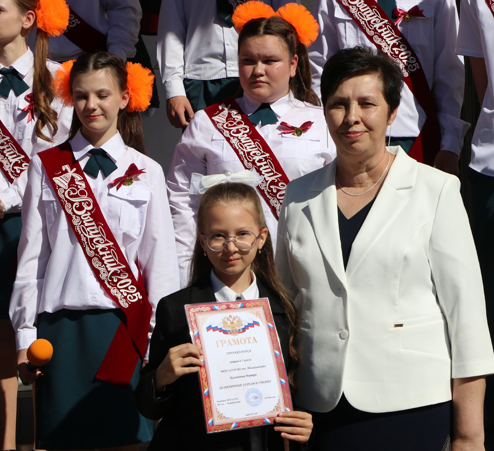Торжественная линейка началась с выноса флага Российской Федерации под звуки Гимна. Немало тёплых слов и пожеланий было сказано в адрес виновников торжества. С напутственными словами и поздравлениями к выпускникам выступил глава муниципального образования Алексей Михайлович Романов. Директор школы Ольга Романовна Маслова отметила успехи и достижения учеников, поблагодарила их за труд и усердие, пожелала удачи в предстоящих испытаниях. Прозвучали трогательные слова классного руководителя Ларисы Александровны.