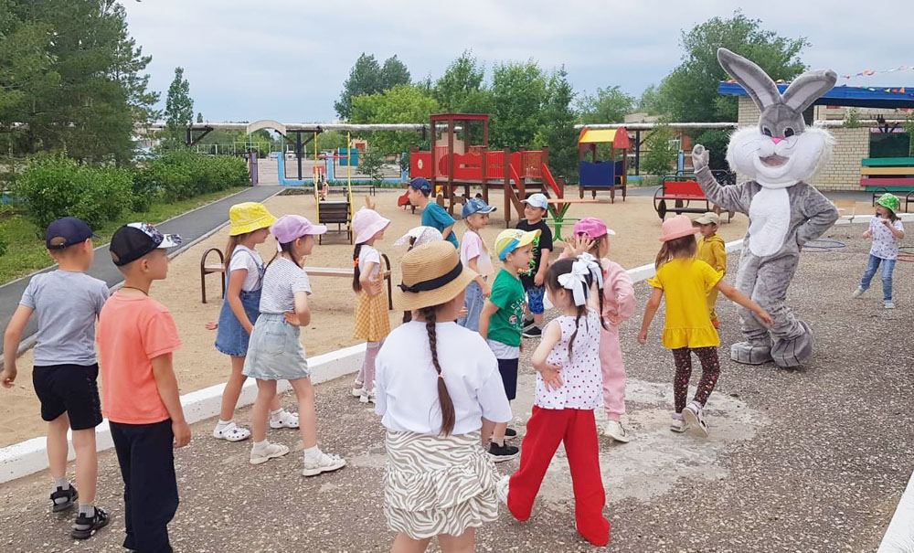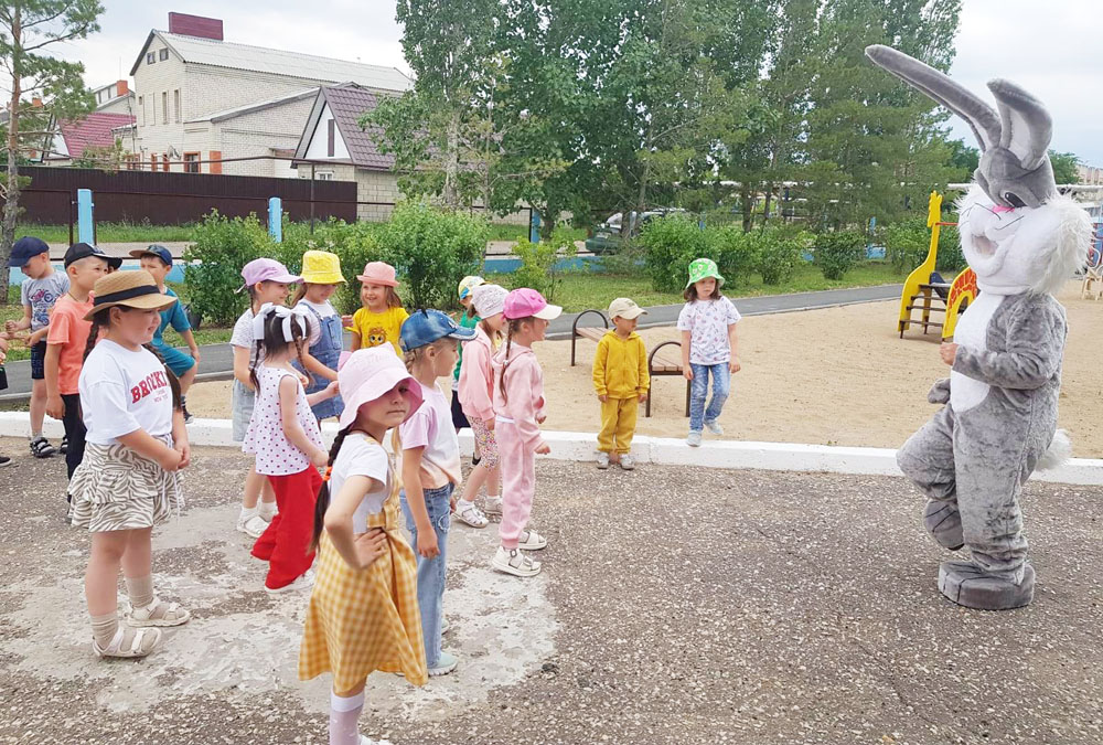 На протяжение всего праздника детей забавлял озорной зайка, который стал настоящим украшением. Он активно участвовал в играх, развлекал детей и создавал радостную атмосферу. Вместе с зайкой малыши танцевали, участвовали в конкурсах и обсуждали, как можно заботиться о природе.