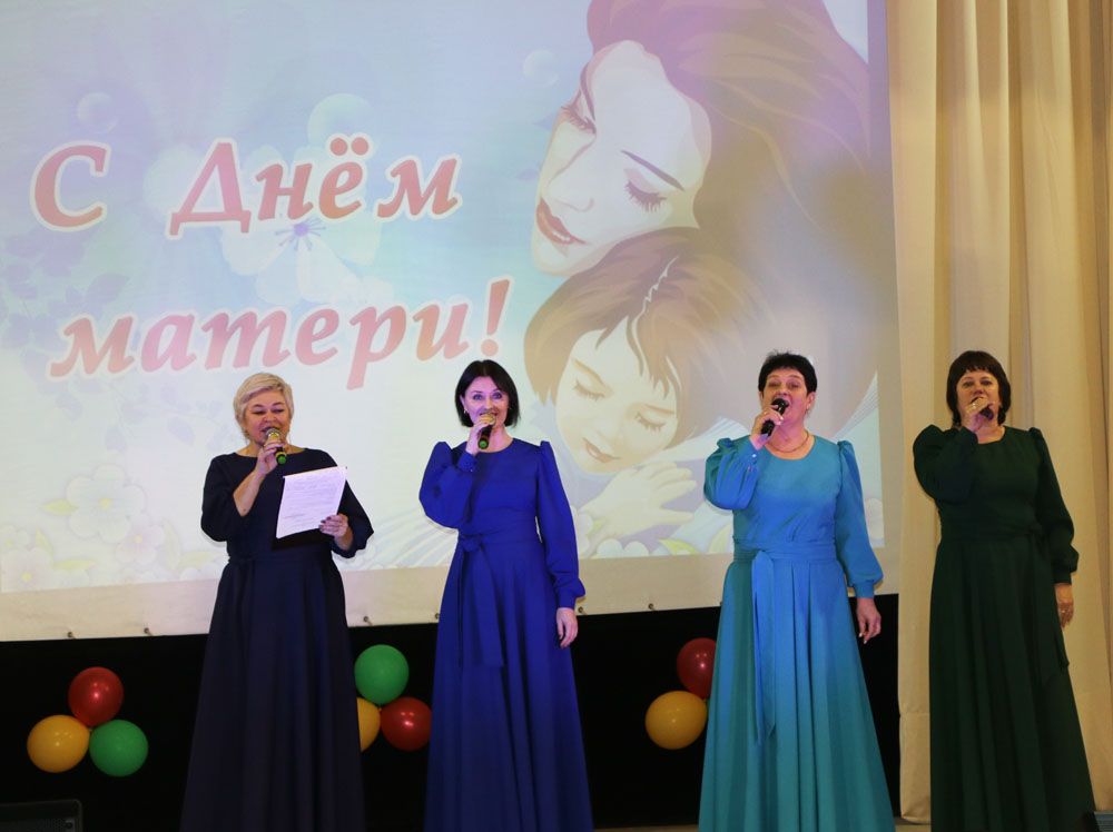 Со сцены прозвучало много тёплых и трогательных слов. Концертные номера наполнили зал яркими красками и веселыми нотами. Дарья Цайдер, Лилия Сиротина, Ирина Волкова, Антон Житваев, Людмила Анохина, Владимир Косинов, Индира Биктасова и Арина Килунина, вокальный коллектив «Лейся, песня!», фольклорный ансамбль «Частушечка», воспитанники детского сада «Сказка», танцевальные коллективы «Улыбка» и «Солнышко», участники ТСК «Элита-Данс» Максим Терехов и Софья Косолапова, учащиеся 10-го класса с теплотой и любовью подарили свое творчество дорогим мамам и бабушкам.