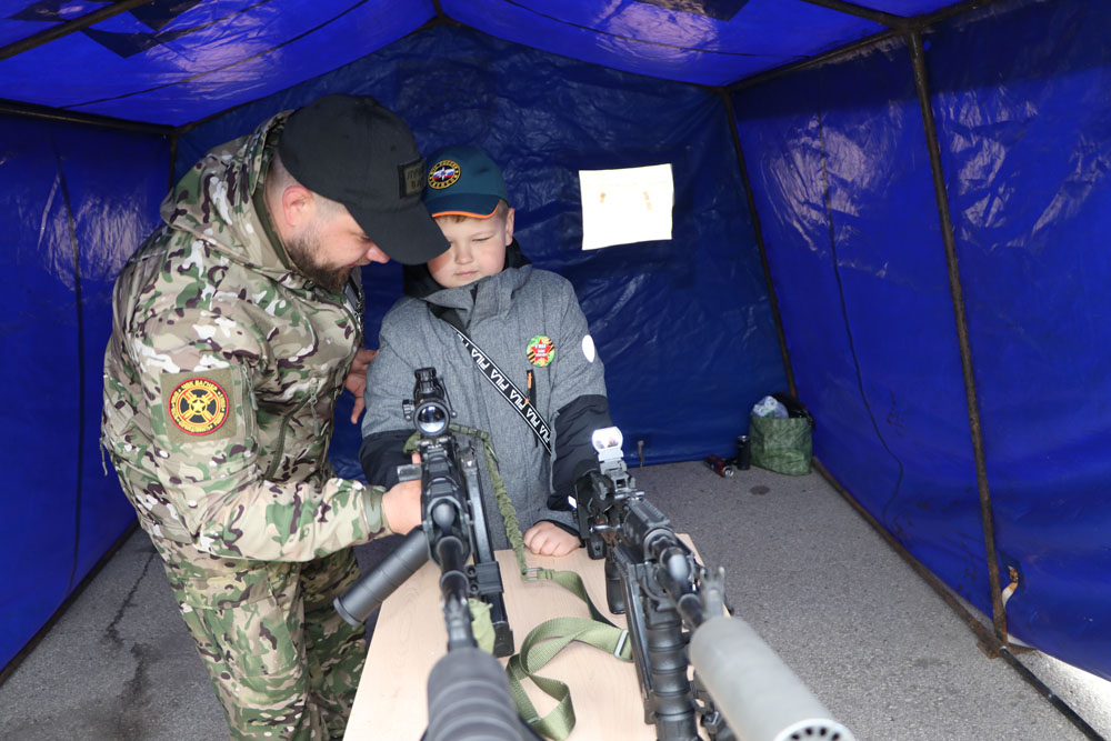 Участники организации «Быть добру» продемонстрировали настоящую военную экипировку жителям и гостям поселка.