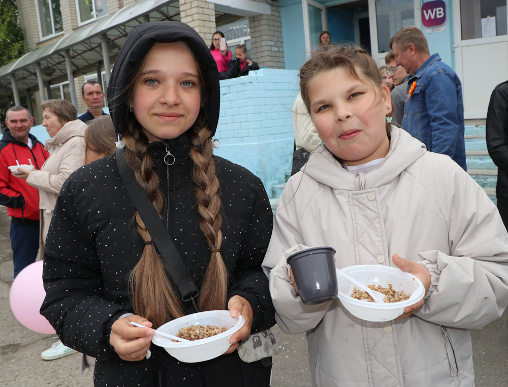 В этот праздничный день работала полевая кухня, где можно было отведать горячий чай и традиционную солдатскую кашу.