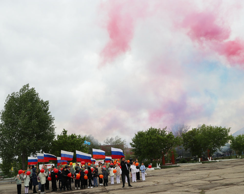 После окончания митинга перед зрителями по площади, торжественным маршем прошли школьники, сотрудники организаций муниципального образования и МЧС.