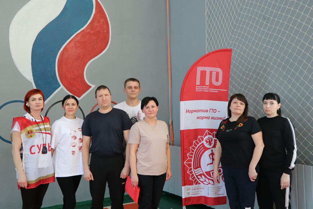 Сдача нормативов комплекса ВФСК «Готов к труду и обороне» прошла 12 февраля в спортивном зале и бассейне средней общеобразовательной школы п. Михайловский. Сотрудники филиала «Экотехнопарк «Михайловский» ФГУП «ФЭО» пришли в спортзал дружной командой.