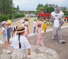 На протяжение всего праздника детей забавлял озорной зайка, который стал настоящим украшением. Он активно участвовал в играх, развлекал детей и создавал радостную атмосферу. Вместе с зайкой малыши танцевали, участвовали в конкурсах и обсуждали, как можно заботиться о природе.