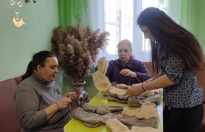 В это непростое время они не остаются в стороне и активно помогают защитникам Отечества. Эти скромные труженицы тыла, находясь в интернате, с особой теплотой и участием вяжут носочки для наших бойцов и передают их на "Добросклад". Эти вязаные вещи наполняются своей добротой и теплом, создавая мостик между фронтом и тылом.