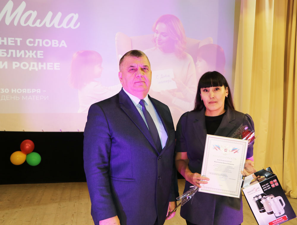 В преддверии праздника в Доме культуры состоялся концерт «Родной, единственной, любимой!». С поздравлениями выступил глава муниципального образования А.М. Романов. В торжественной обстановке Алексей Михайлович вручил Почетные грамоты многодетным мамам Талалихиной Юлии Сергеевне, Дундиной Татьяне Викторовне и Маштаковой Ирине Петровне.