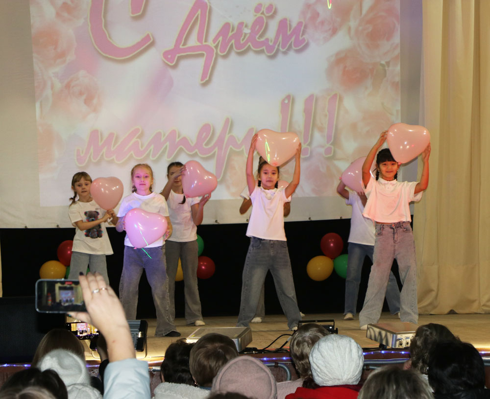 Со сцены прозвучало много тёплых и трогательных слов. Концертные номера наполнили зал яркими красками и веселыми нотами. Дарья Цайдер, Лилия Сиротина, Ирина Волкова, Антон Житваев, Людмила Анохина, Владимир Косинов, Индира Биктасова и Арина Килунина, вокальный коллектив «Лейся, песня!», фольклорный ансамбль «Частушечка», воспитанники детского сада «Сказка», танцевальные коллективы «Улыбка» и «Солнышко», участники ТСК «Элита-Данс» Максим Терехов и Софья Косолапова, учащиеся 10-го класса с теплотой и любовью подарили свое творчество дорогим мамам и бабушкам.
