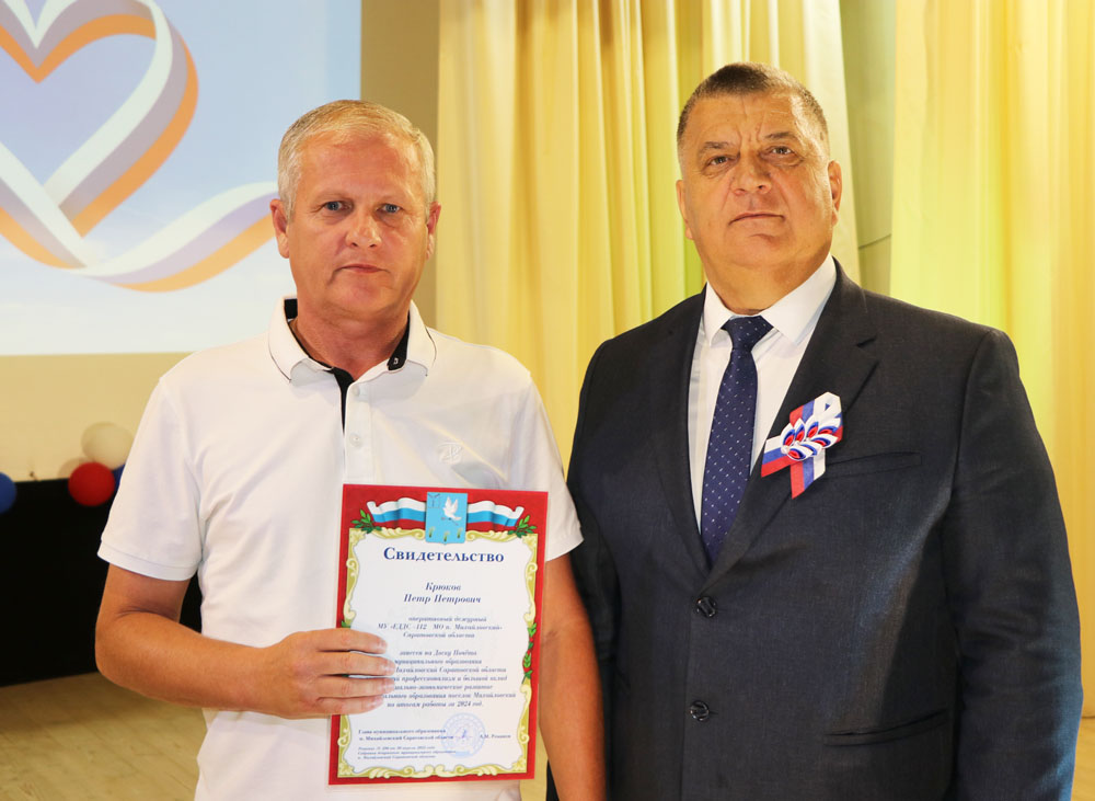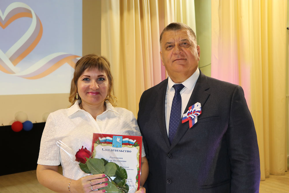 Одна из самых красивых традиций Дня России - церемония вручения свидетельств о занесении на Доску почета МО п. Михайловский Саратовской области. Были отмечены лучшие организации и граждане за высокий профессионализм, большой вклад в социально-экономическое развитие муниципального образования по итогам работы 2024 года. В рамках Всероссийской акции «Мы - граждане России» юным михайловцам, достигшим 14-летия, были вручены паспорта гражданина Российской Федерации. А вновь вступившие в ряды Всероссийской Политической Партии «Единая Россия» получили Партийные билеты. Почетной грамотой Общероссийской ассамблеи развития территорий и общественного самоуправления награждена начальник правового отдела администрации МО п. Михайловский. Благодарностью главы муниципального образования отмечены женщины клуба «Вдохновение» за активную гражданскую позицию, за организационную работу с населением по сбору гуманитарной помощи для мобилизованных и военнослужащих, участвующих в специальной военной операции.