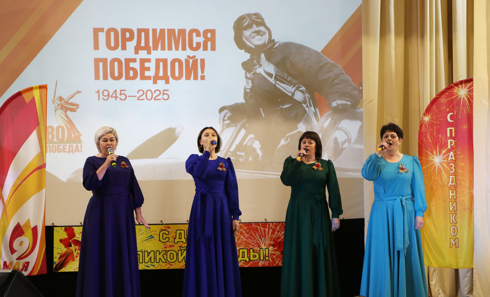 Творческие коллективы Дома культуры подготовили яркую программу, в которой прозвучали всеми любимые песни военных лет, современные патриотические композиции, а также танцевальные номера.