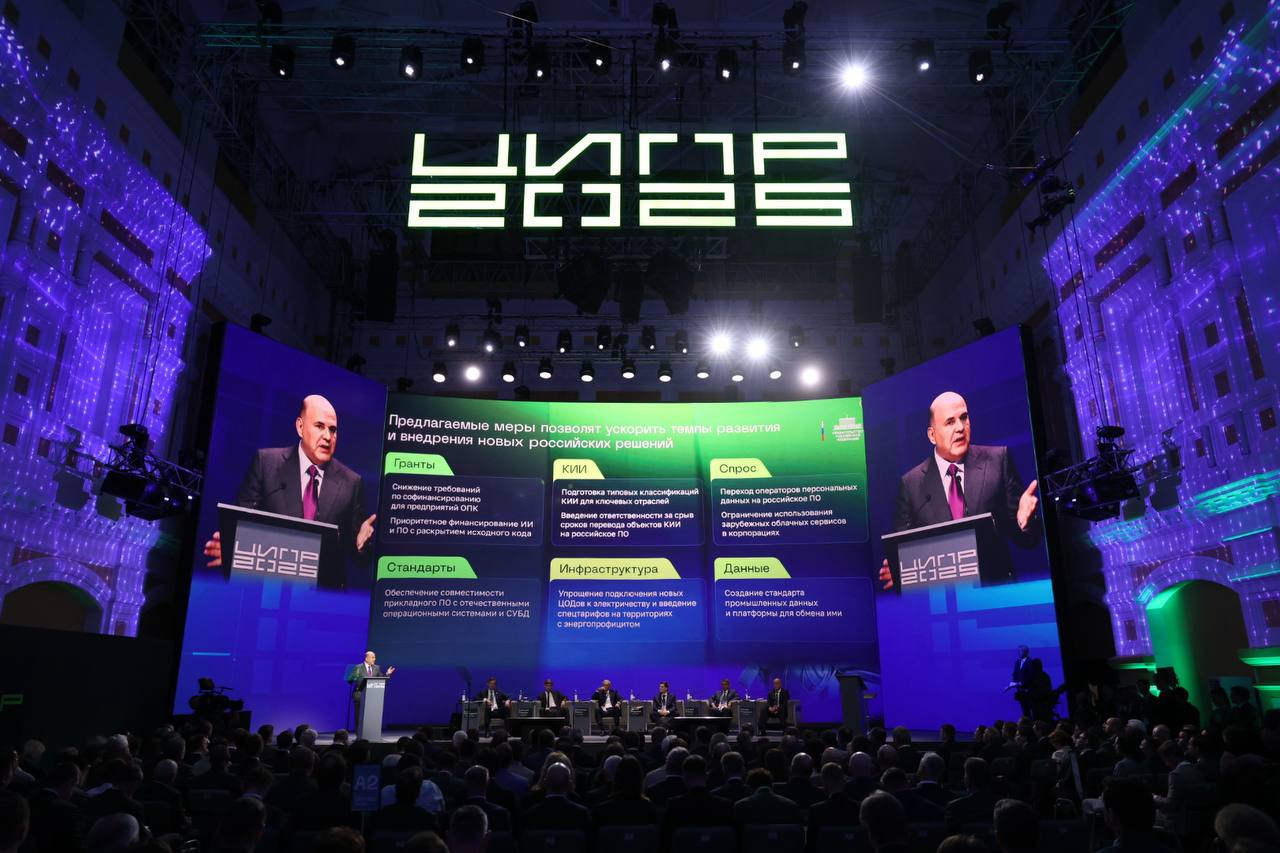 3 июня 2025 года в Нижнем Новгороде Председатель Правительства России Михаил Мишустин выступил на пленарной сессии конференции «Цифровая индустрия промышленной России». В мероприятии приняли участие первый заместитель Председателя Правительства России Денис Мантуров, заместитель Председателя Правительства Дмитрий Григоренко, министр промышленности и торговли Антон Алиханов, министр цифрового развития, связи и массовых коммуникаций России Максут Шадаев, полномочный представитель Президента в ПФО Игорь Комаров и другие официальные лица.