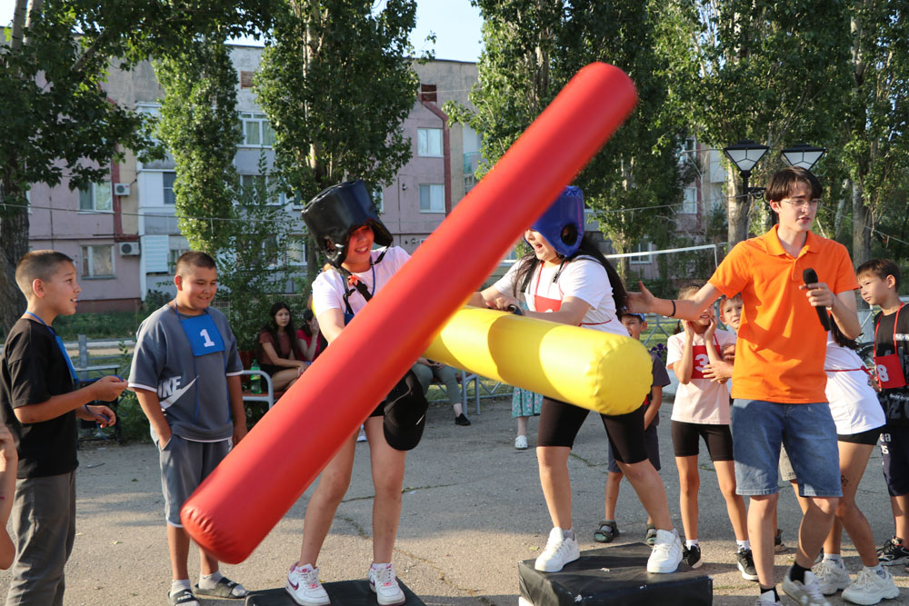 Фишкой спортивного праздника стал тимбидинг. В соревнованиях приняли участие две команды школьников. Участники преодолевали препятствия, делали это с азартом и улыбками на лицах. Здесь было важно всё: и скорость, и ловкость, и командная поддержка. Каждый финиш вызывал бурю эмоций и аплодисментов. Главная цель тимбилдинга – это вовсе не очки, а единство, общение и заряд положительных эмоций, которые остаются надолго.