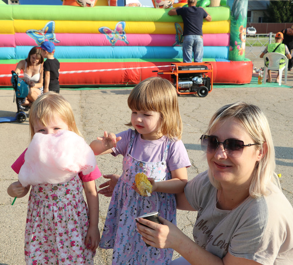 Для малышей, которые не могли участвовать в спортивных состязаниях, были организованы другие развлечения. Они катались на каруселях, прыгали на батутах. Предусмотренные были и сладости: сахарная вата, попкорн. Родители, бдительно следящие за резвыми чадами, также не теряли позитивного настроя, угощались вкусным шашлыком.
