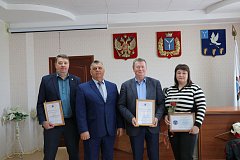 В преддверии Дня местного самоуправления, который ежегодно отмечается 21 апреля, на постоянно действующем совещании в торжественной обстановке за добросовестный труд, большой личный вклад в развитие местного и общественного самоуправления Саратовской области Почетной грамотой Ассоциации Совета муниципальных образований Саратовской области награждены: Павлов Александр Александрович – депутат Собрания депутатов МО п. Михайловский, Романенко Виктор Иванович – председатель Совета ветеранов войны, труда, Вооруженных сил и правоохранительных органов МО п. Михайловский. Благодарственным письмом отмечены Шлепкина Татьяна Ивановна – консультант бюджетного отдела финансового управления администрации МО п. Михайловский и Жаманткова Анна Викторовна – депутат Собрания депутатов МО п. Михайловский