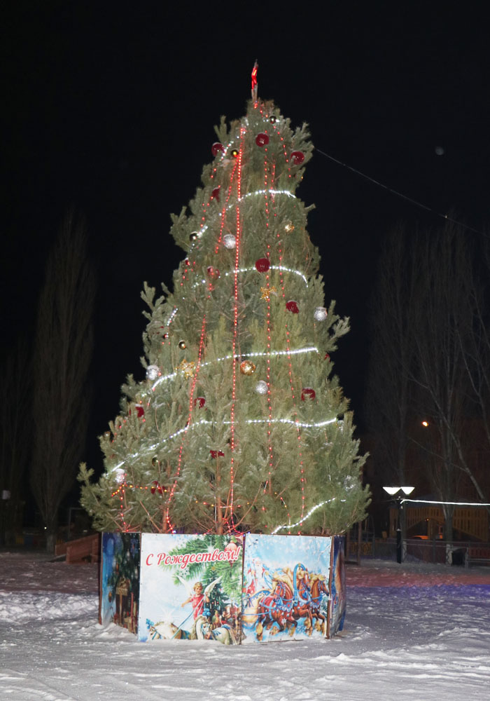 Новый год - это время волшебства и чудес, которое начинается с украшения домов и улиц. Одним из ярких элементов праздничной атмосферы являются наряженные яркими гирляндами, светящимися фигурами и инсталляциями здания и окна. На площади установили красивую ёлку, которые стала центром притяжения для жителей и гостей.