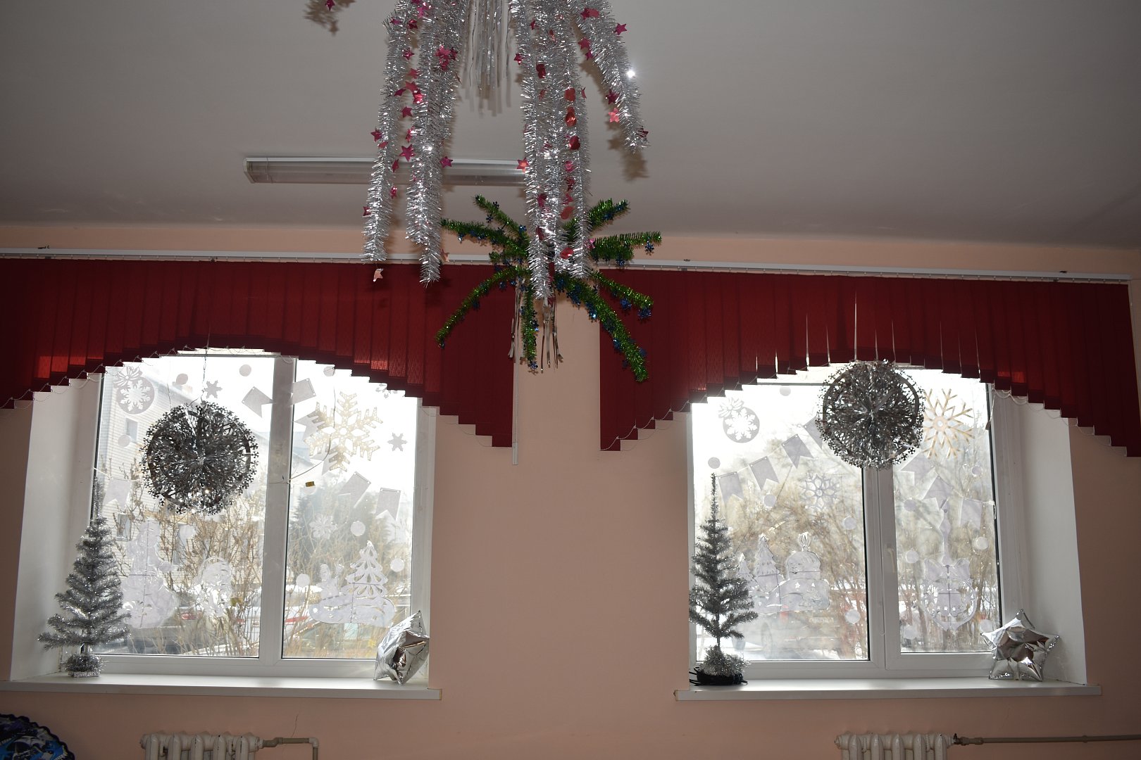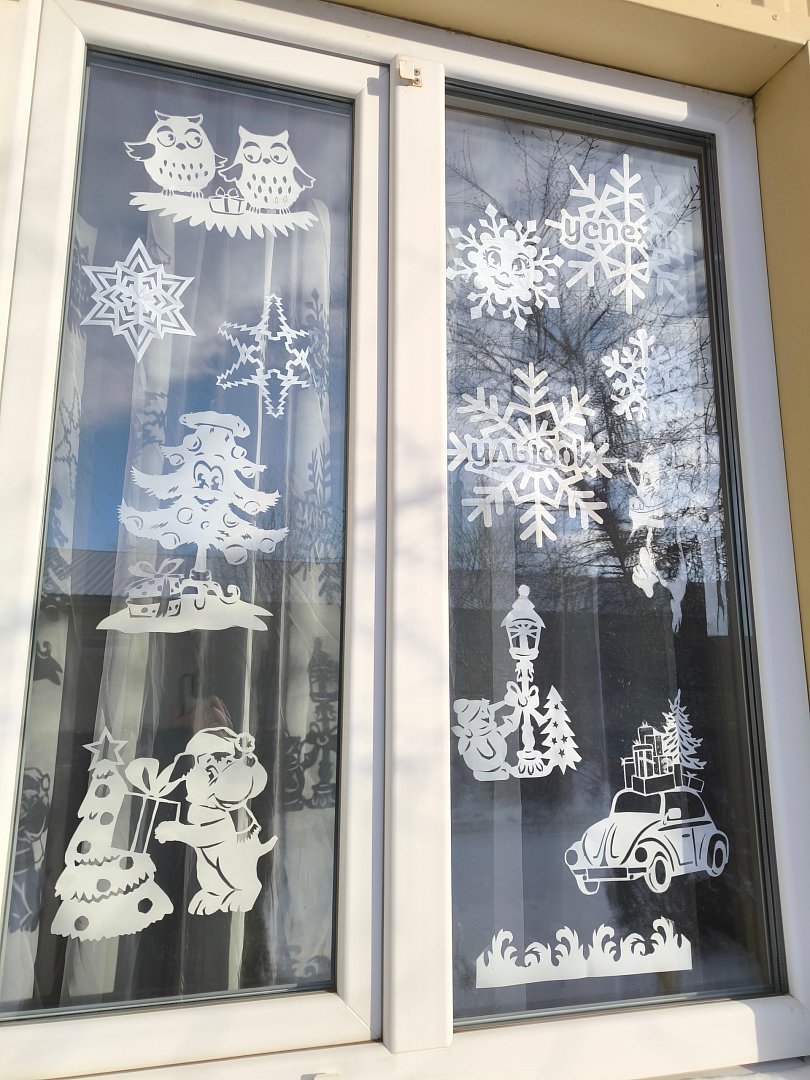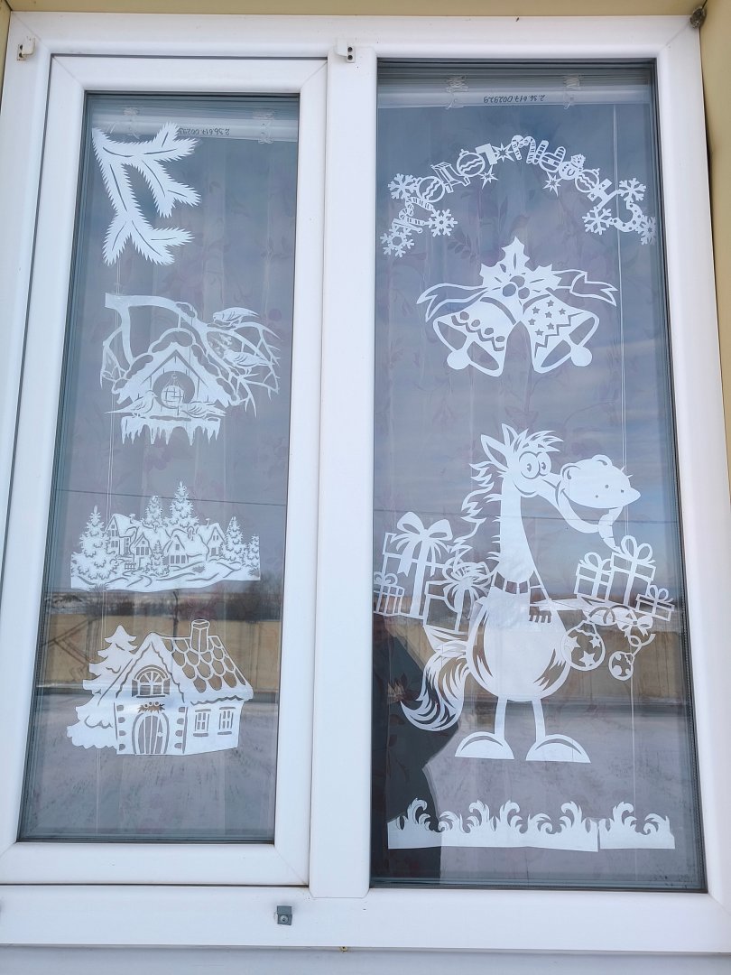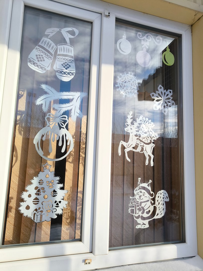 Особенно популярны тематические украшения. Окна украшены изображениями Деда Мороза, Снегурочки, снеговиков и других новогодних персонажей. Также можно увидеть окна, украшенные гирляндами в форме ёлок, подарков и других символов праздника.