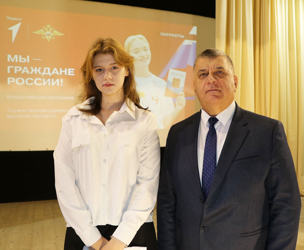 В рамках акции «Мы граждане России», в торжественной обстановке Алексей Михайлович вручил паспорт учащейся михайловской школы Варваре Волковой.