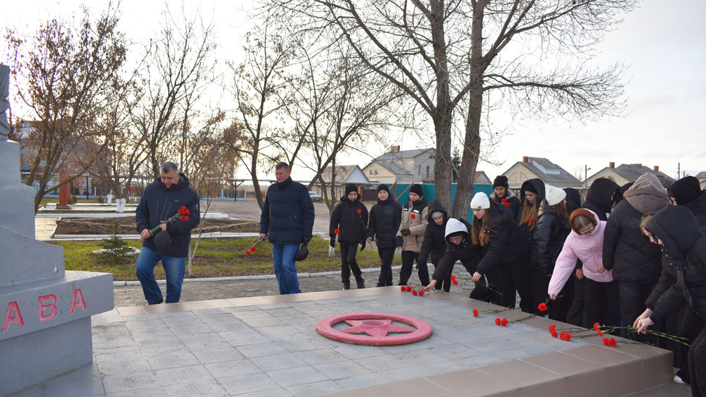 В п. Михайловский в День Героев Отечества возложили цветы к Обелиску